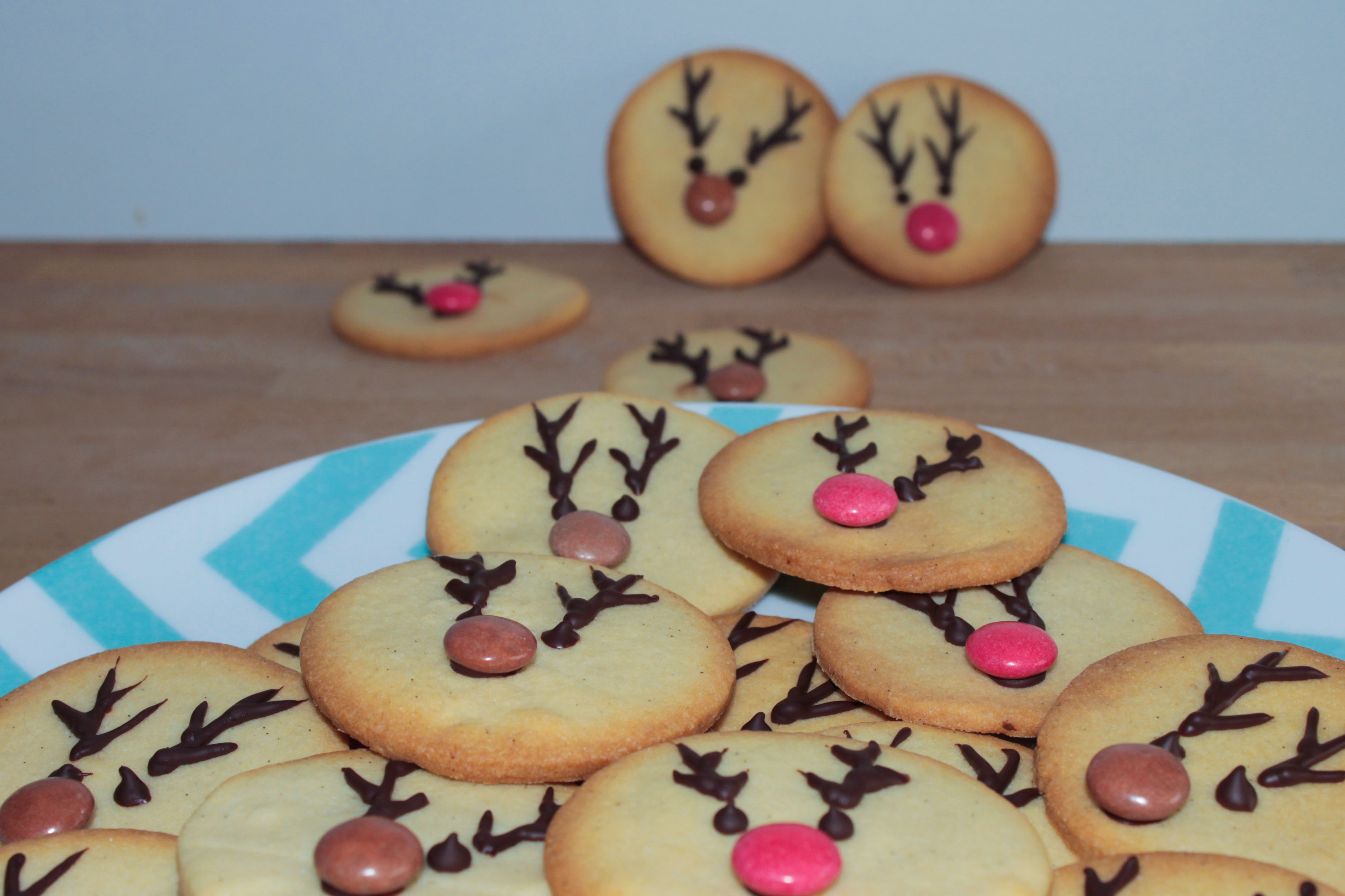 Aujourd’hui je vous propose donc de réaliser des petits sablés rennes de Noël. Ils fleurissent partout sur la toile, peut-être parce qu’ils sont ultra simples à réaliser (la recette vient de chez Marie-Laure). Il va vous falloir un peu de patience pour le décor mais le résultat est trop mignon.